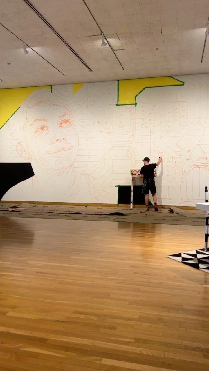 Alex Ann Allen is a traveling artist and curator based in South Bend, IN, specializing in portraiture and large-scale geometric color portals that merge abstraction with realism.
